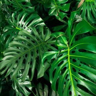On the stream there are a few big open leaves that have fallen from overhead.