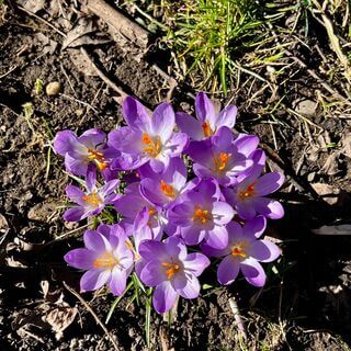 First flowers coming through the dark earth,