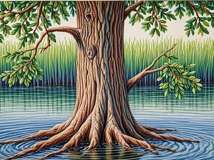 Surrounded by water,