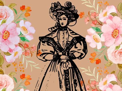 In her brown-stuffed gown,