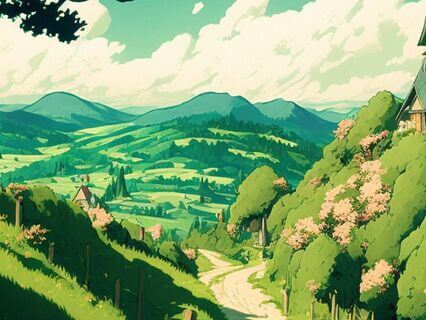 Surrounded by rolling fields,