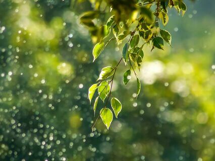 The birds singing in the trees,