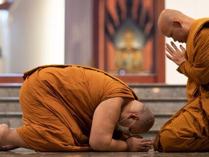 Each sangha member will do a formal sangha act by chanting sangham bhante bhavaremi,