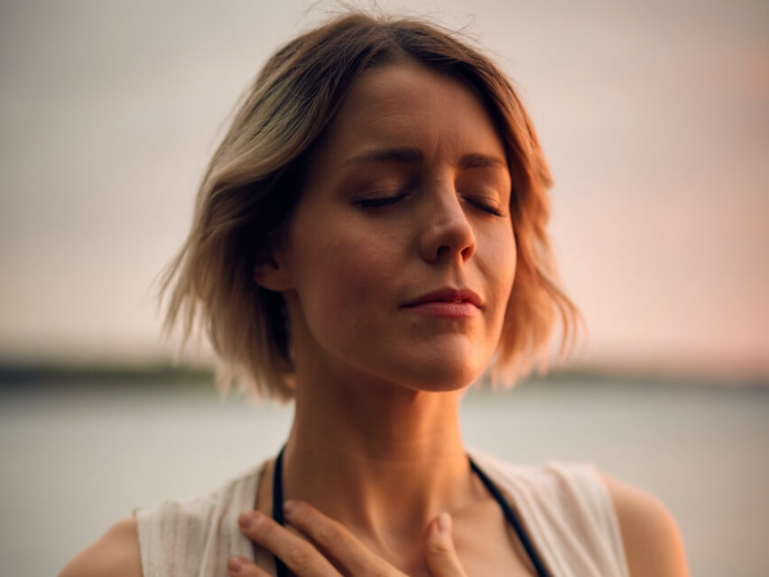 Spüre nun bei Deiner Atmung in Deinen Herzbereich.
