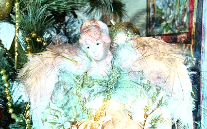 Now the angels placed on top of the Christmas tree.