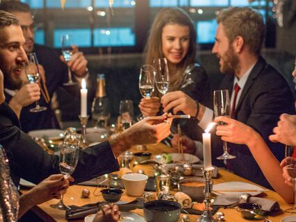 Saying how well the evening's going and how much they like the decorations,