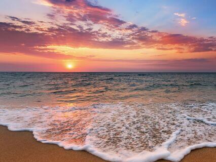 And as the sun continues to set while the water laps gently on the shore,