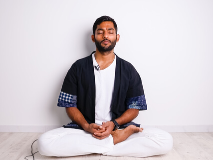 Closing your eyes and taking a posture that is comfortable for you.