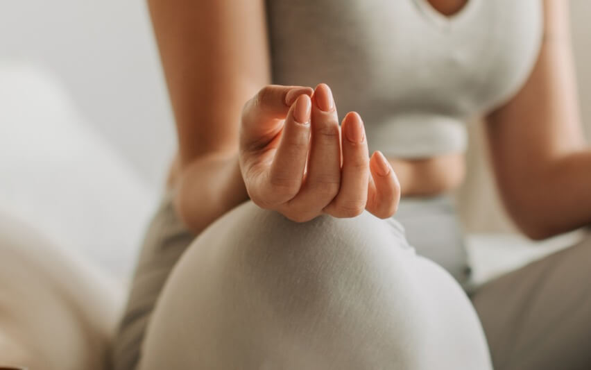 Du darfst deine Augen leicht geöffnet lassen und dich sanft auf einen Punkt auf dem Boden vor dir konzentrieren.