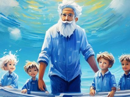 A great wind then swept across the sea and the children began to dive toward the seabed searching for their father's comforting arms.