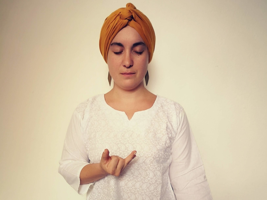 Joignez délicatement la pointe de l'index qui représente la conscience individuelle et la pointe du pouce qui représente la conscience cosmique ou universelle.