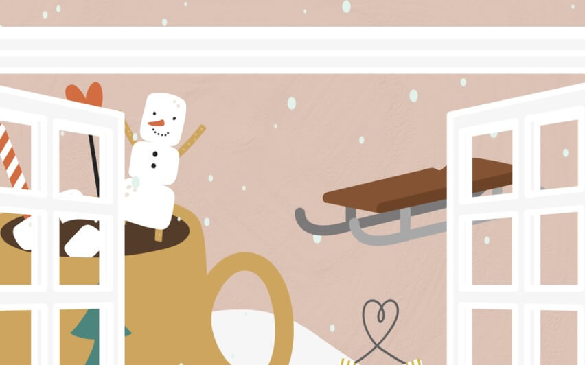 Dan pak je de beker warme chocolademelk met marshmallows in je handen en ga het in het raamkozijn zitten.