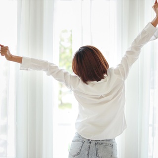Stretch your arms up above your head and yawn and draw a rainbow all the way around you.