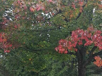 The leaves are changing their tones from deep greens of summer to vibrant oranges,