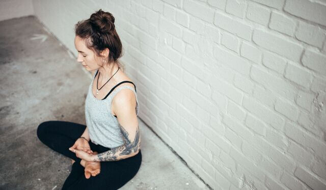 Du kannst die Augen aber auch halb geöffnet lassen und den Blick auf den Boden ruhend.