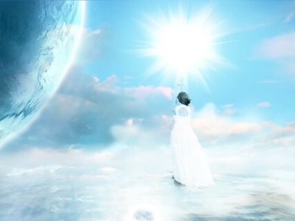 You begin to notice that you're no longer standing on the beach but you're floating effortlessly towards the light,