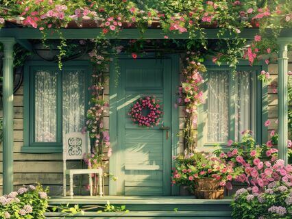 Overflowing down the steps in waves of blossom and color.