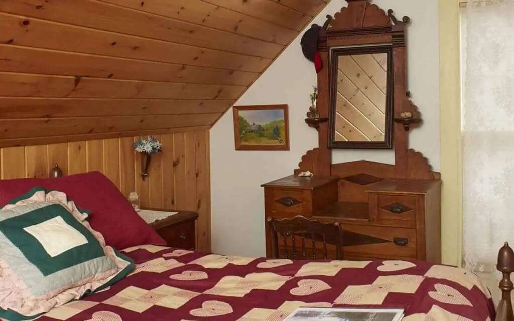 All six guest rooms at Sewall House are private, offering comfort and quiet for each guest. Two rooms feature private bathrooms, while the remaining four share two bathrooms located off the hallway. Most rooms are furnished with antique full-size beds, with one room offering a queen-size bed. Guests also have access to a sauna and a single-person jacuzzi, creating additional opportunities for relaxation and renewal.