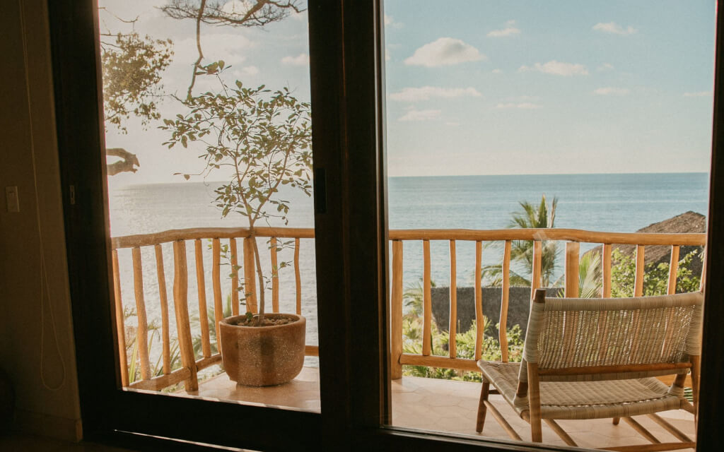 Whether you seek serene solitude or a cozy shared space, we have a perfect option to suit your journey. Each room is beautifully curated for deep relaxation, comfort and bliss. You’ll wake up to the soothing glow of sunlight, the sounds of the ocean and the gentle rustle of palm trees from your room. Enjoy your own private balcony with stunning ocean views from your own personal sanctuary. The rooms are each equipped with AC units, dark shades, and comfy mattresses and will have you well rested for each morning’s slow flow yoga practice. As for toiletries, organic shampoo + conditioner + body wash will be ready for you in your shower. Purified drinking water is available throughout the property so we can remain a plastic free experience. High speed Wi-Fi, daily maid service, in-suite safe and all linens (including beach towels) are included.