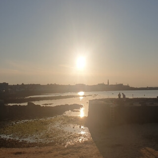 Standing or perhaps we're walking.