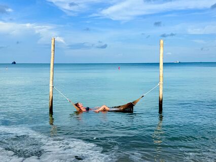 See yourself lying in a hammock in the sea.
