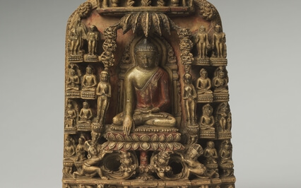 And our connection is this beautiful sculpture made of Andagou stone with pigments depicting major events of Buddha's life.