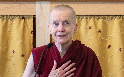 Venerable Sangye Khadro leads a guided meditation based on teachings by Theravada nun Ayya Khema on the four kinds of happiness — sensory happiness, divine happiness, and happiness that arises from concentration and insight.